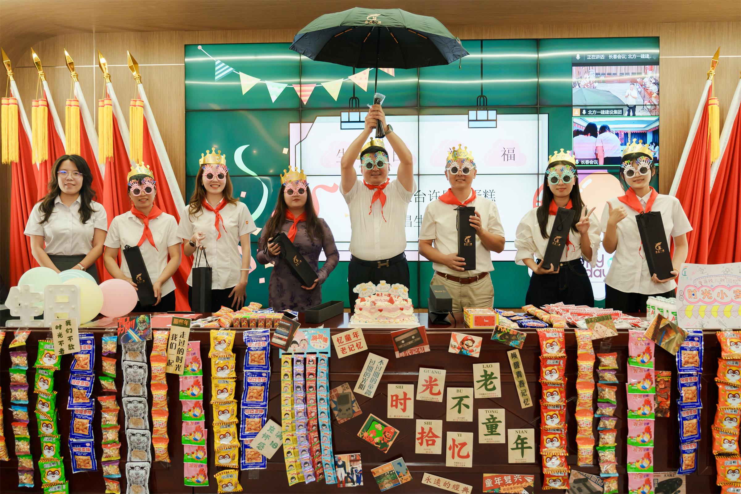 還記得小時候放學后,攥著零錢沖向小賣部的期待嗎?還記得守在電視機前等待動畫片開播的焦急嗎?當時間的指針悄悄回轉,當熟悉的旋律再次響起,一場充滿歡聲笑語的“重返童年”主題生日會,在北方一建建設集團溫暖上演,今天,我們不再是西裝革履的大人,而是扎著羊角辮、兜里揣著大大泡泡糖的小孩。